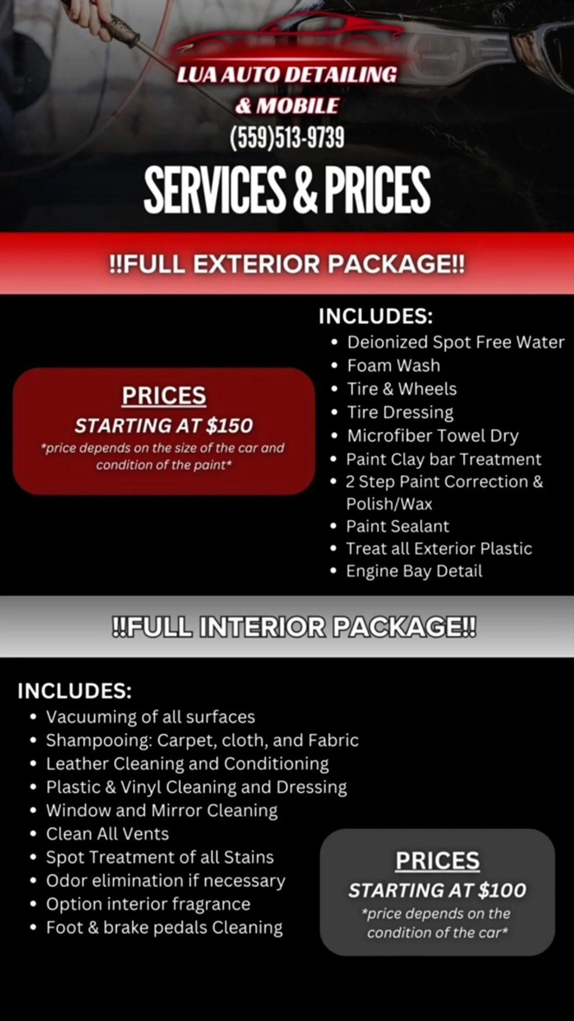 LUA AUTO DETAILING serves anyone in Fresno/Clovis and surrounding areas. CONTACT US to get a quote and receive more info about our services.